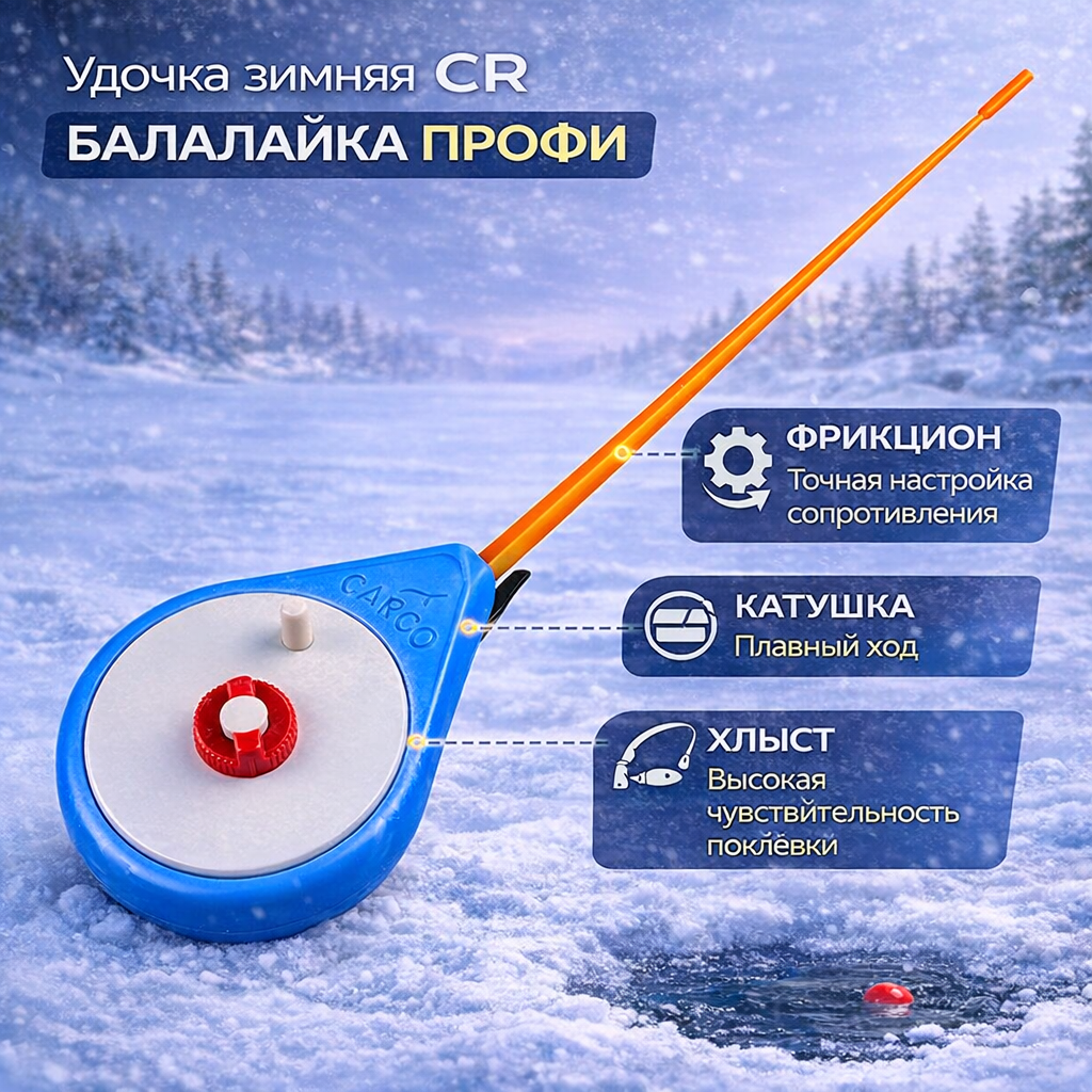 Главная > Зимняя рыбалка > Удочки > Балалайка > Удочка зимняя CR Балалайка Профи с регулируемым фрикционом цв синий