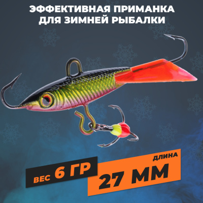 | Длина | Общая - 50 мм, тело - 27 мм, тройник - 13 мм, хвост - 25 мм, крючок одинарный - 10 мм |