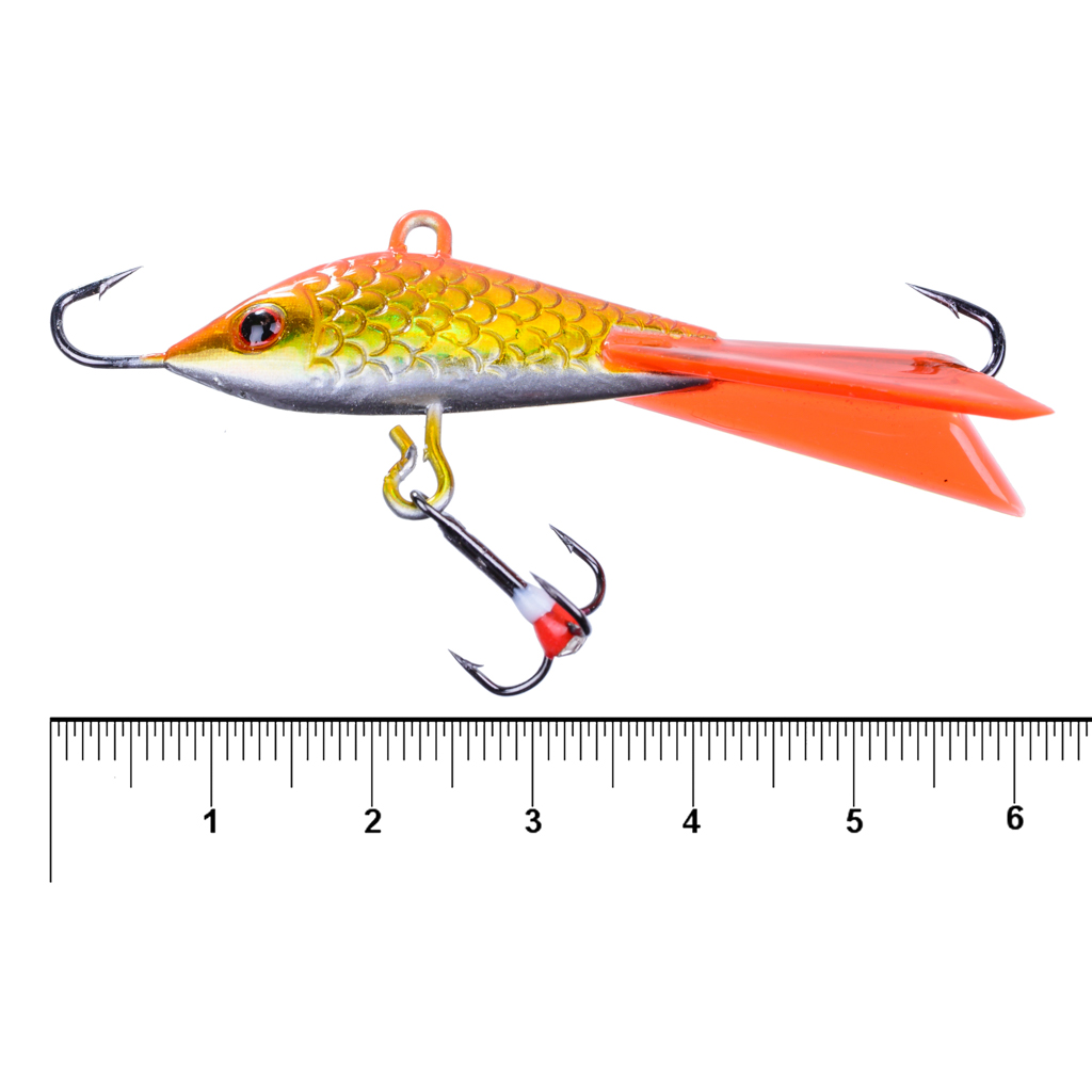 | Длина | Общая - 63 мм, тело - 38 мм, тройник - 14 мм, хвост - 30 мм, крючок одинарный - 6 мм |