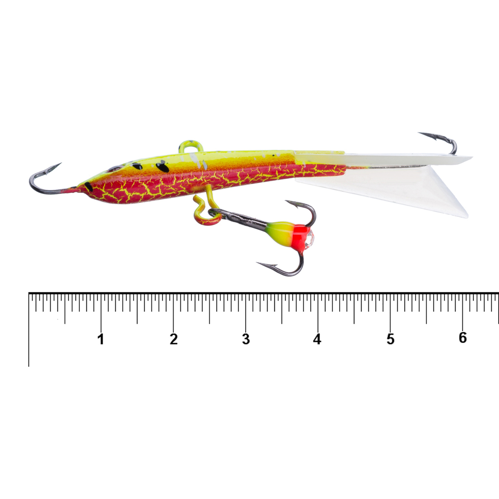 | Длина | Общая - 60 мм, тело - 38 мм, тройник - 13 мм, хвост - 25 мм, крючок одинарный - 10 мм |