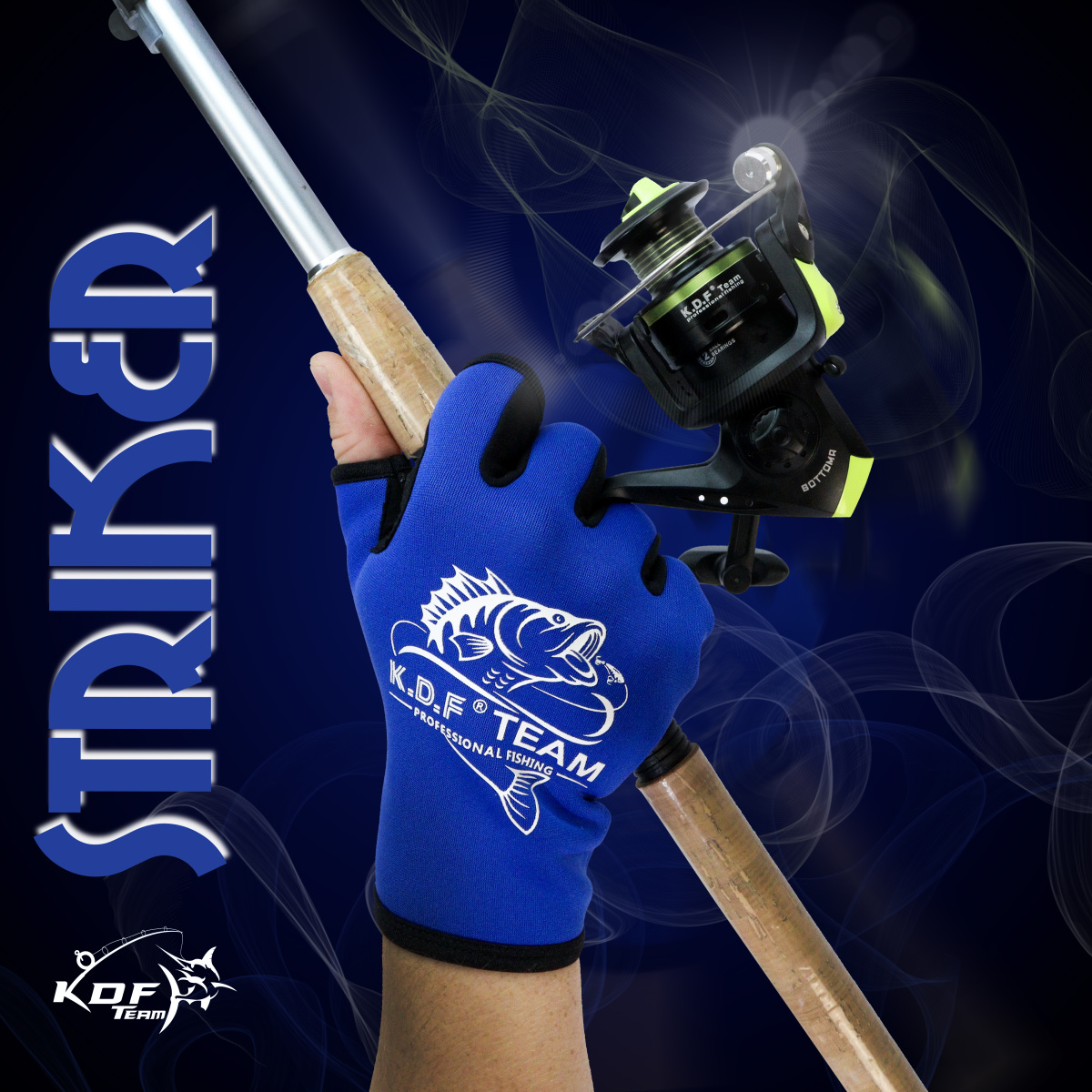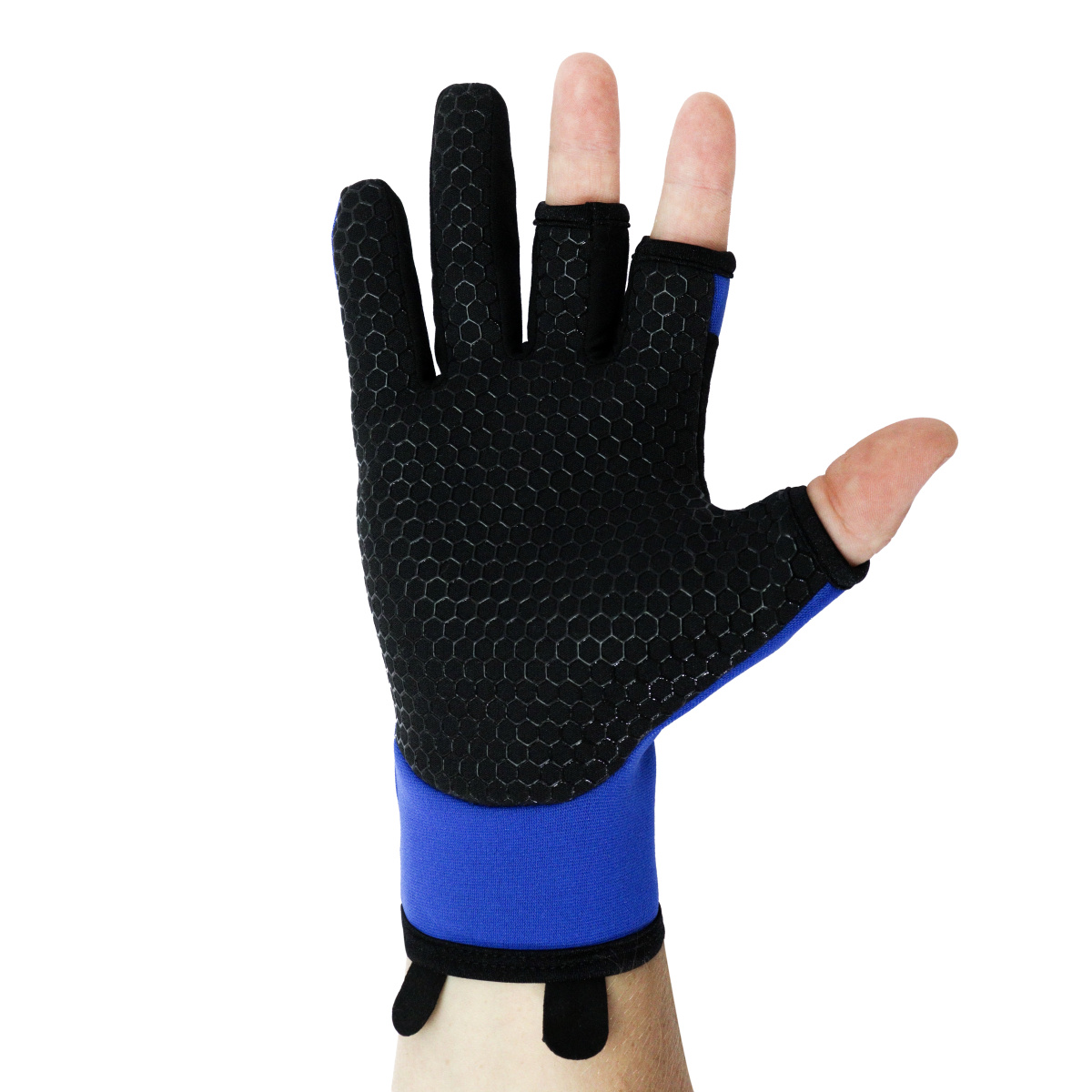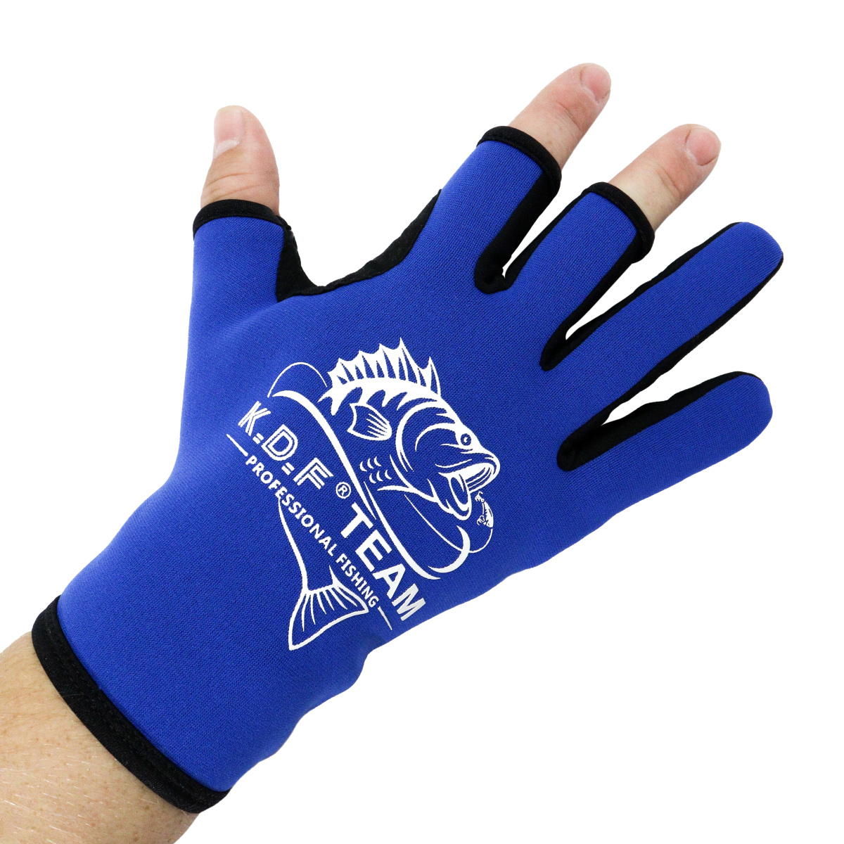 Перчатки спиннингиста KDF Striker 3 пальца открыты цв синий размер L