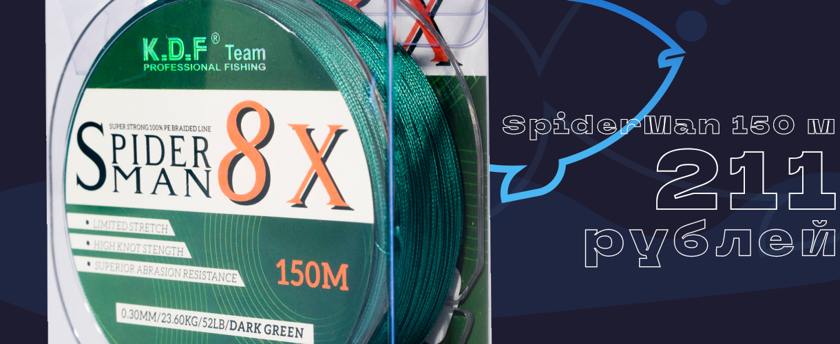 Восьмижильный плетеный шнур KDF SpiderMan - крепкая надежная плетенка по доступной цене!